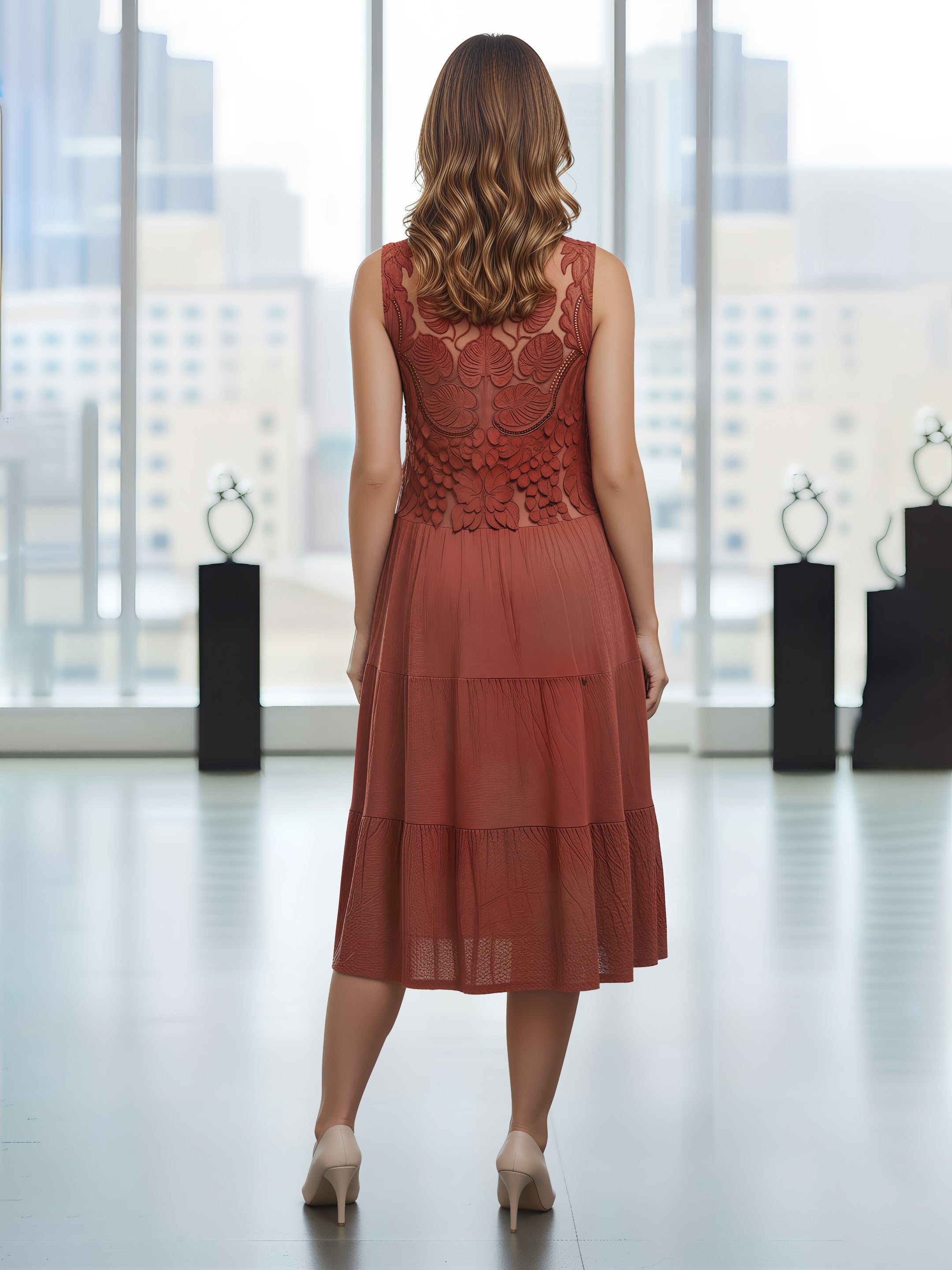 A beautiful, hassle-free knee-length dress with a netted pattern, this brown casual dress featured in our best summer collection is a true blend of classic taste and avid style. this sleeveless casual dress is bound to elevate your wardrobe.