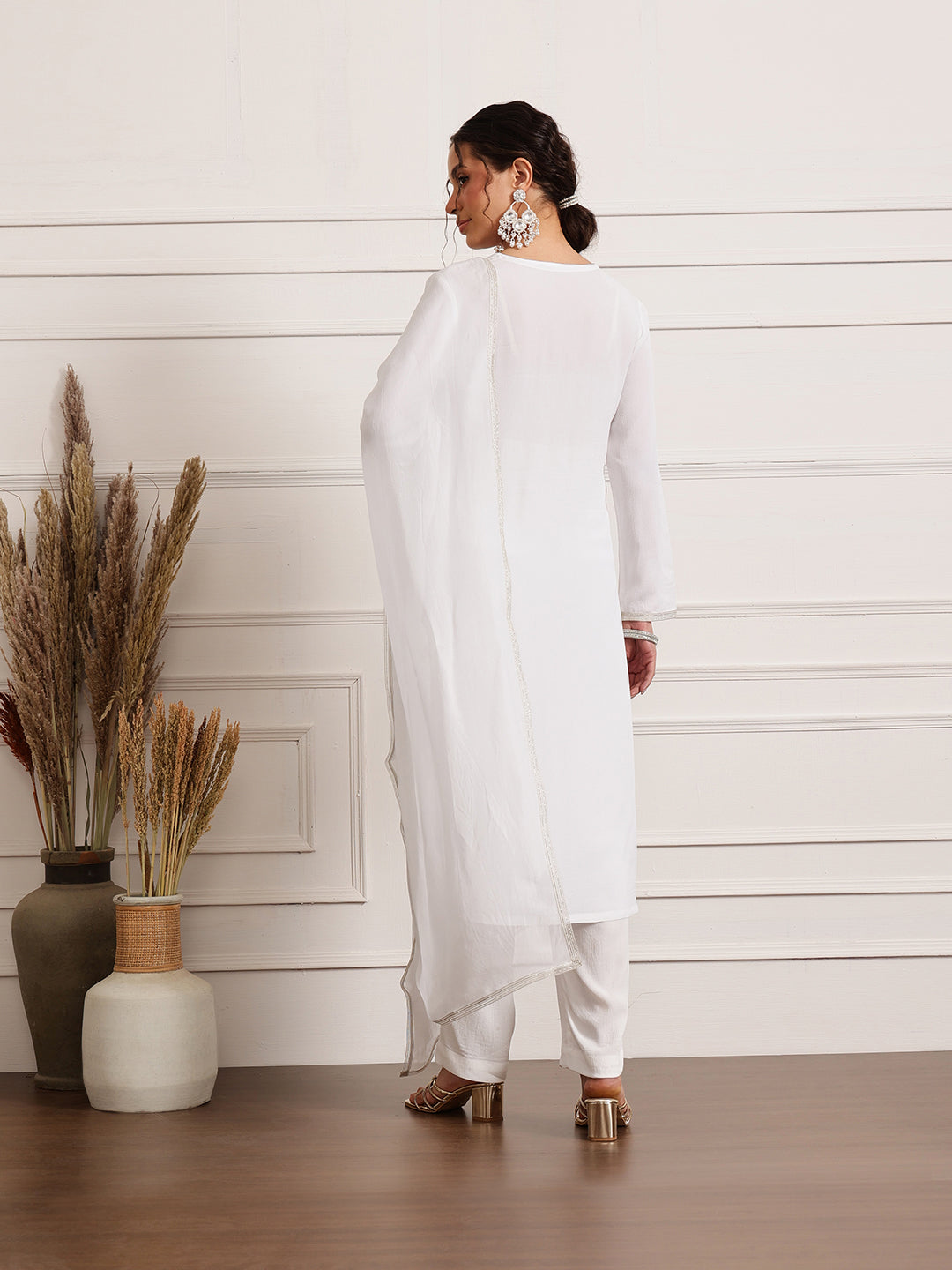 Enhance this refined outfit with pearl or silver jewelry, embellished heels, and a sleek clutch. Perfect for Eid celebrations, summer weddings, or elegant brunches, this timeless piece is a must-have in every fashion-forward wardrobe.