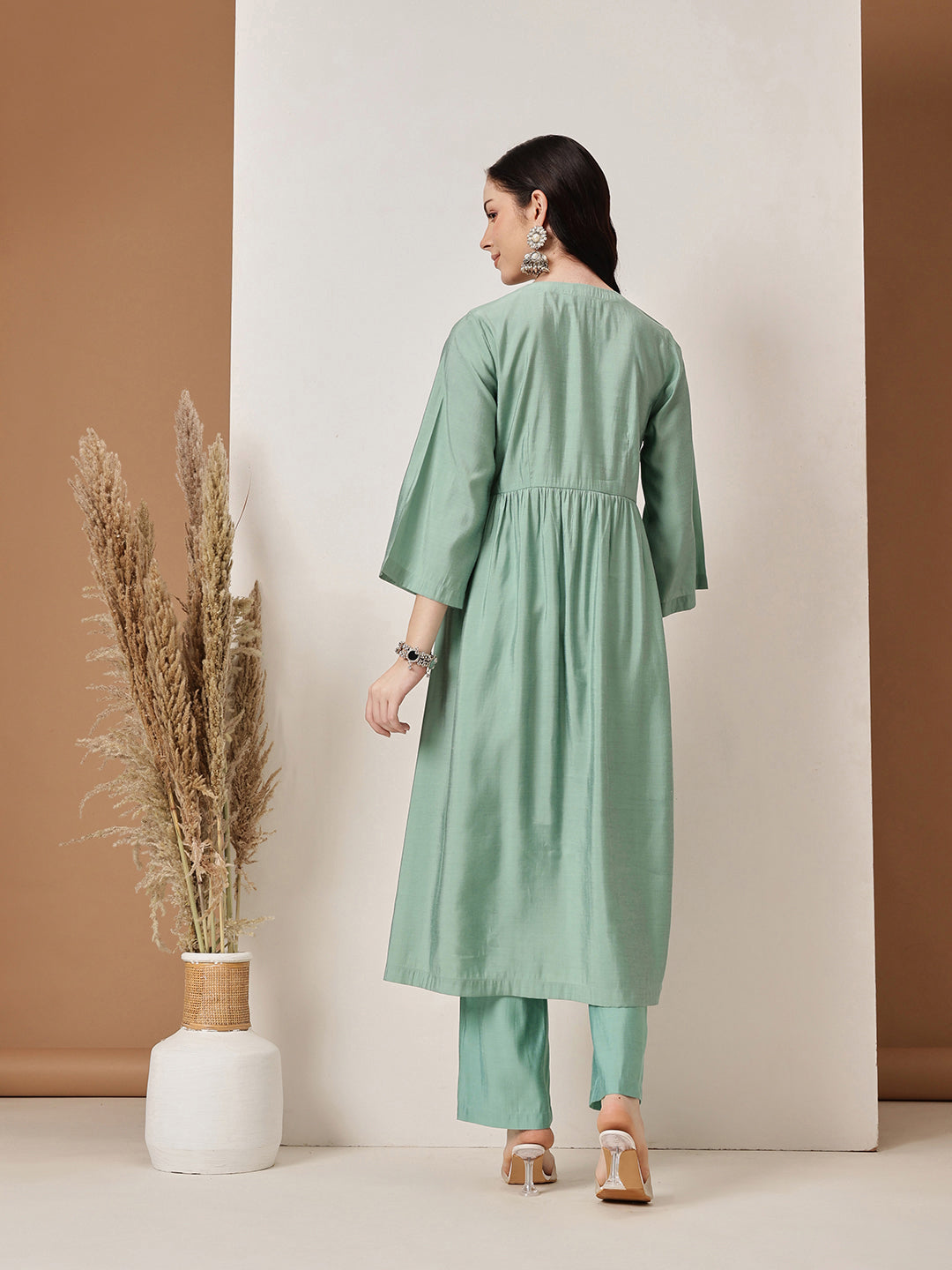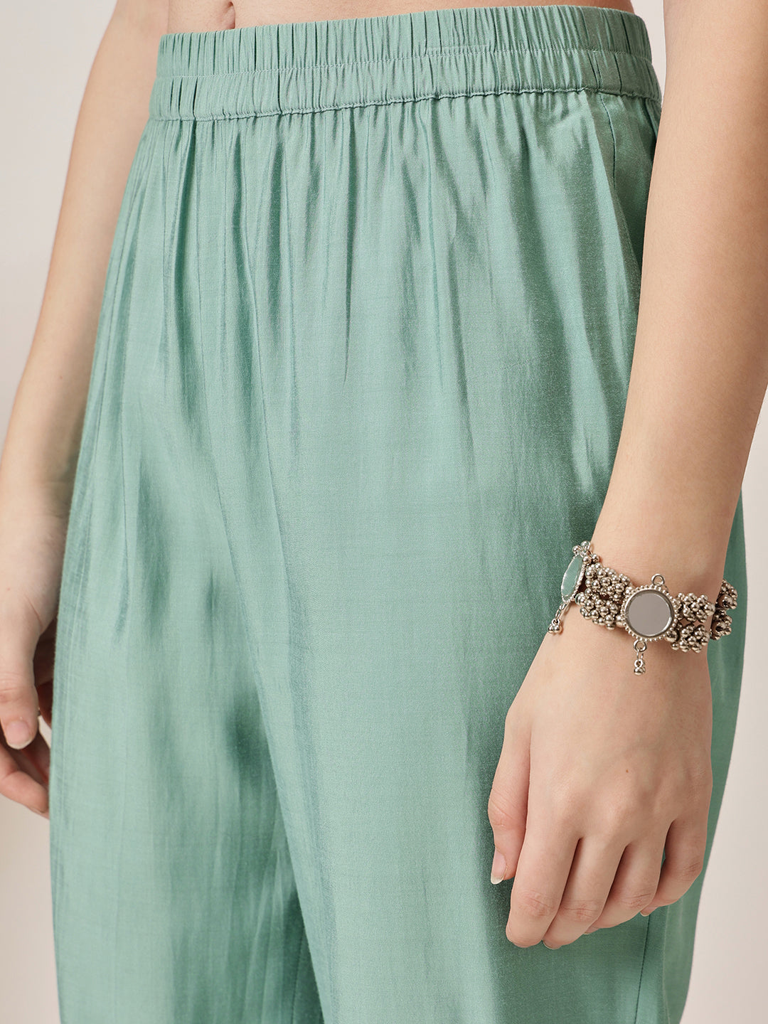 Enhance your ethnic wardrobe with this charming Sage Green Kurta Set. Pair it with silver jhumkas and strappy heels for a festive look, or keep it minimal with flats and a tote bag for an elegant daytime ensemble. Ideal for brunches, festive gatherings, and casual outings.