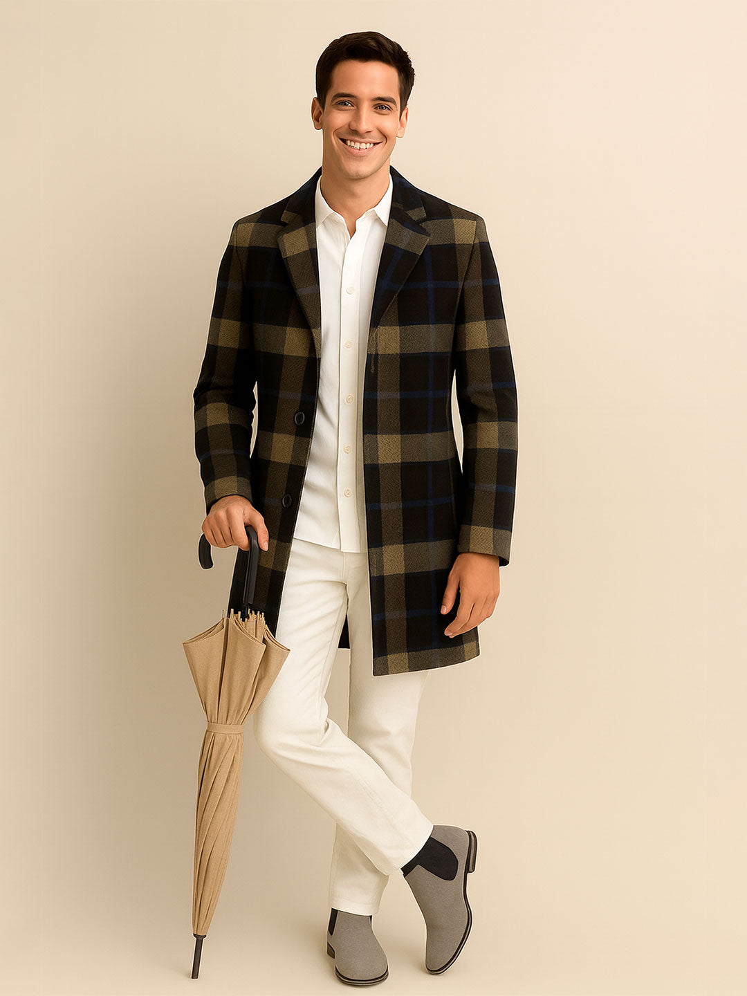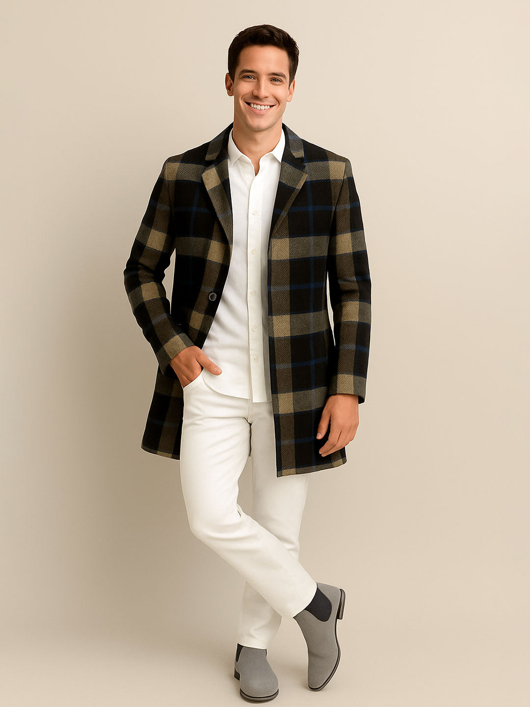 House OF S Men’s Wool Blend Checkered Coat