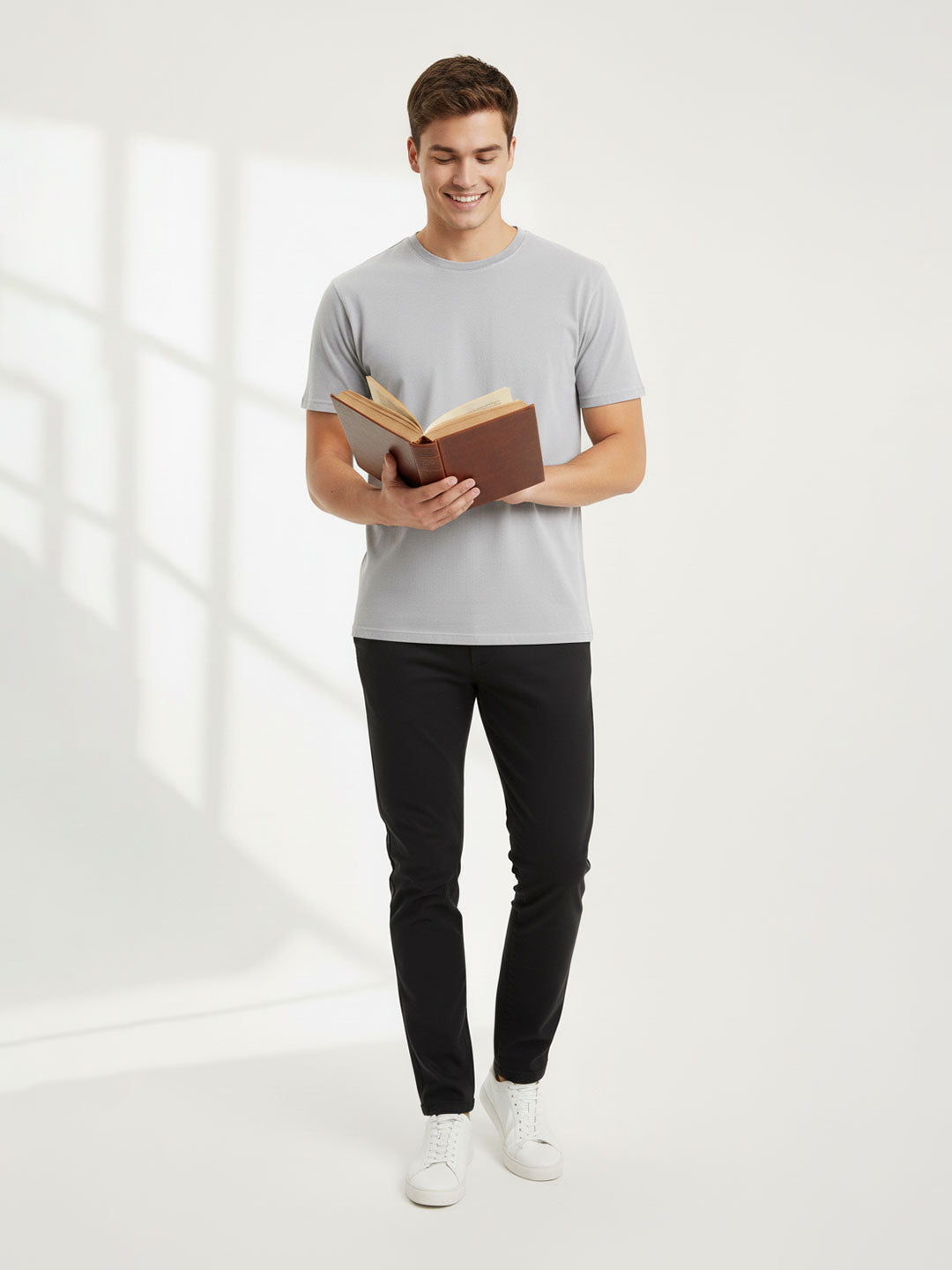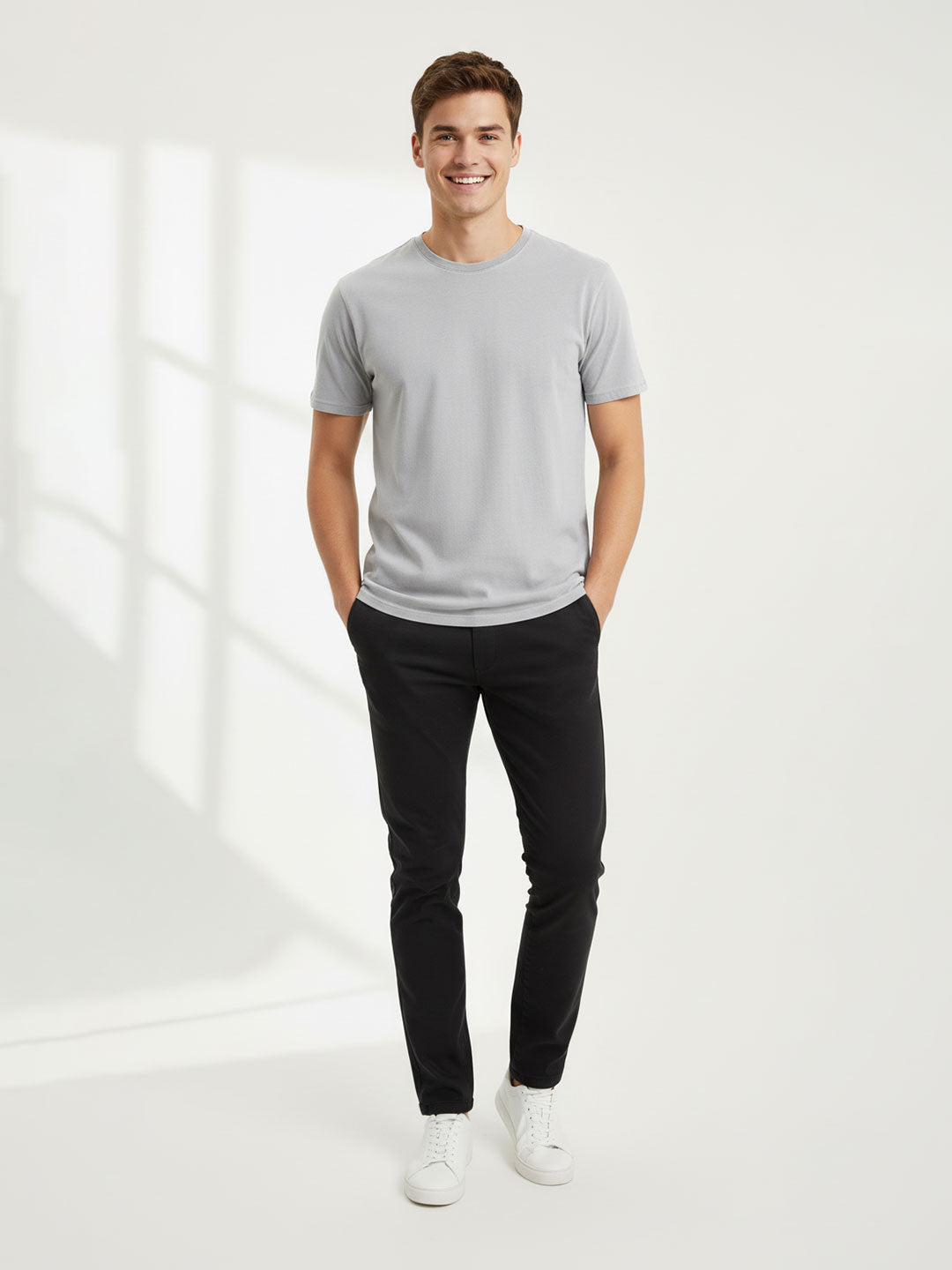 An essential for modern wardrobes, this cool grey T-shirt is the definition of effortless minimalism. Cut from ultra-soft cotton jersey, it features a classic crew neck, short sleeves, and a clean silhouette that works across all seasons. Its subtle hue makes it a perfect layering piece or a sleek standalone option for casual, everyday wear.