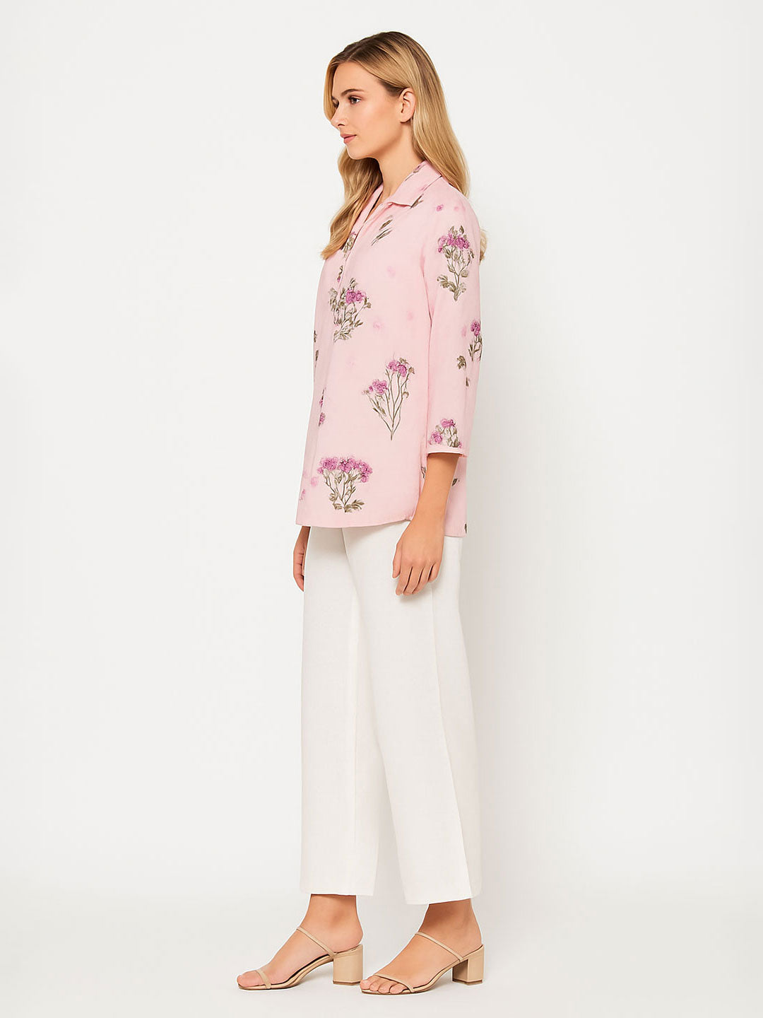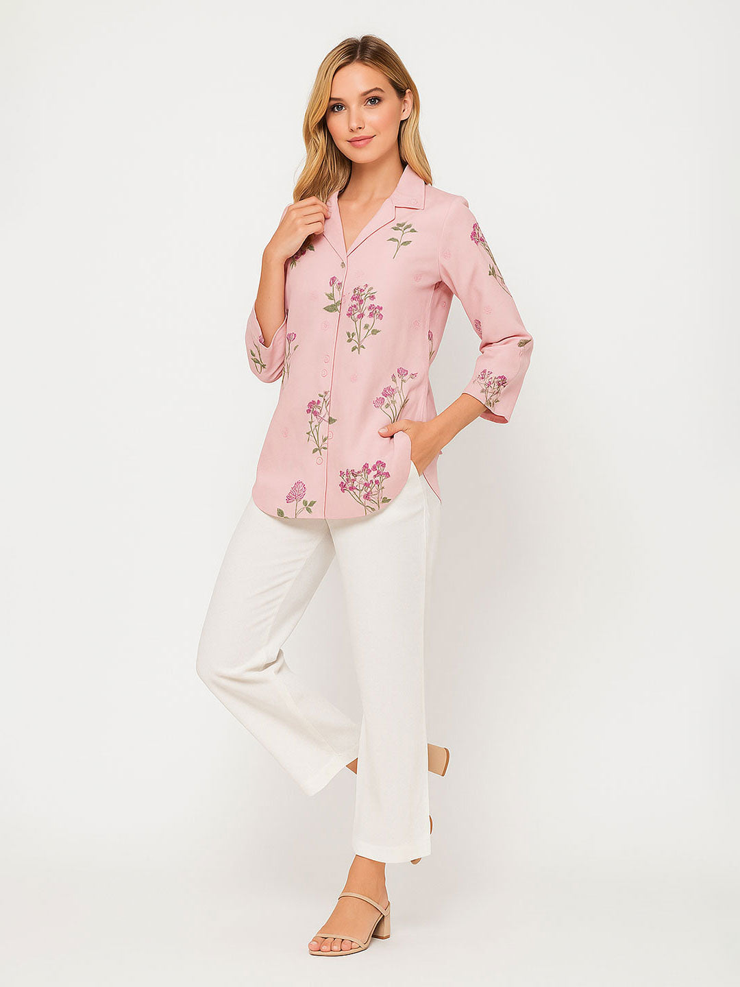 Refresh your wardrobe with this Ivory Floral Embroidered Shirt, crafted for modern elegance and everyday versatility. The shirt features delicate pastel floral embroidery in pink and green tones on a Turkish Rose base, lending it a feminine charm. Designed with a crisp shirt collar, full button-down front, and long sleeves with buttoned cuffs, it combines classic tailoring with subtle detailing. Perfect for both workwear and casual outings, this shirt ensures comfort without compromising on style.