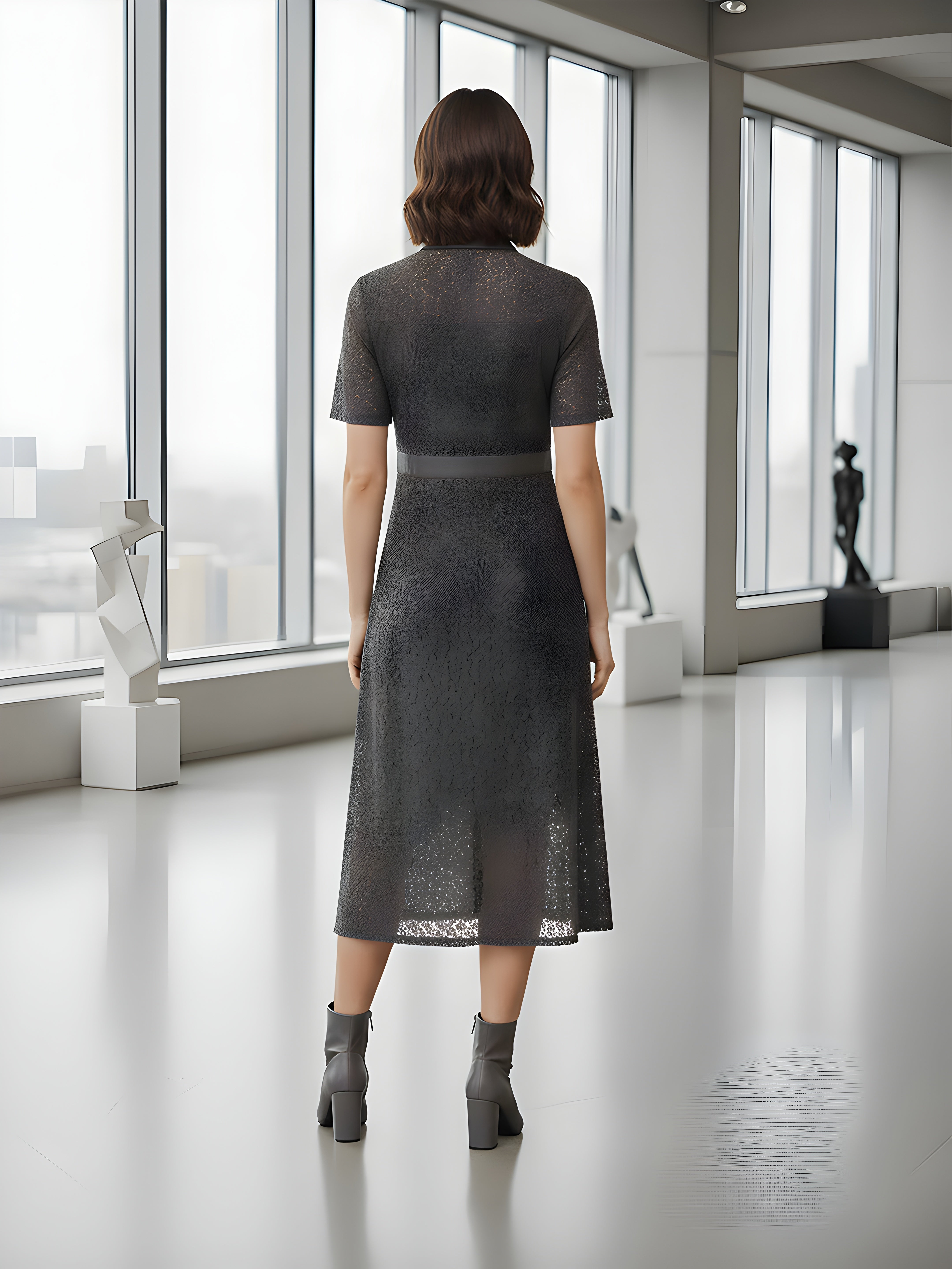 Pair this lace midi dress with nude heels and delicate pearl earrings for a refined, elegant look. Add a structured handbag and minimalistic makeup to keep the focus on the intricate lace details. Perfect for weddings, afternoon tea, and garden celebrations.