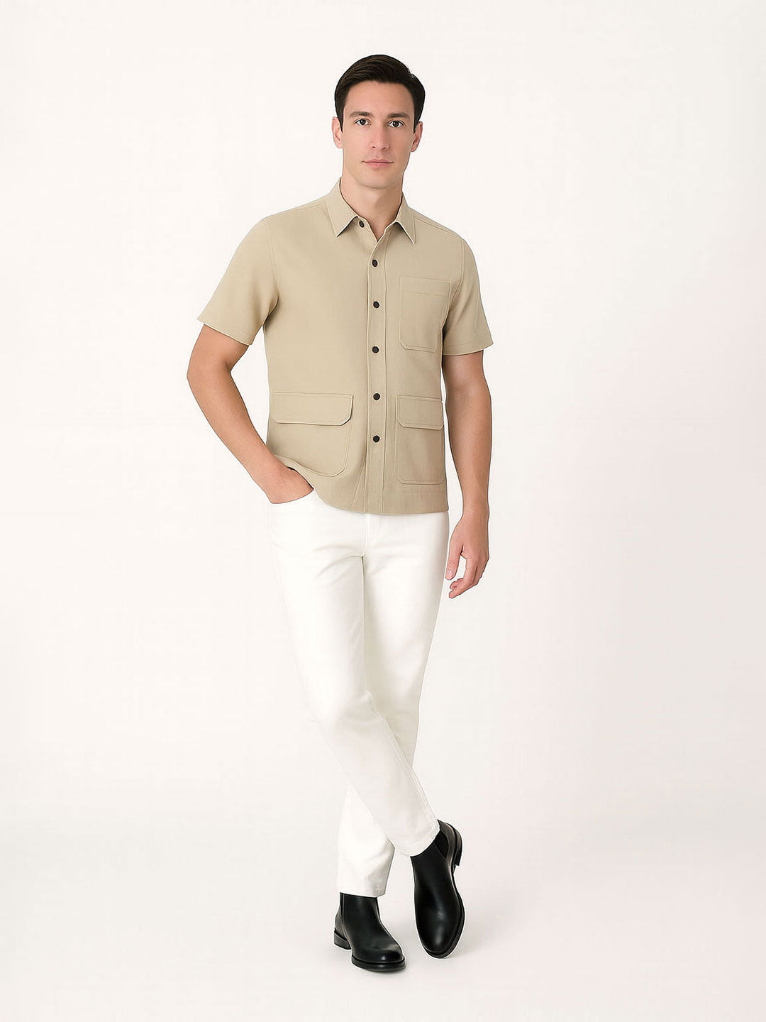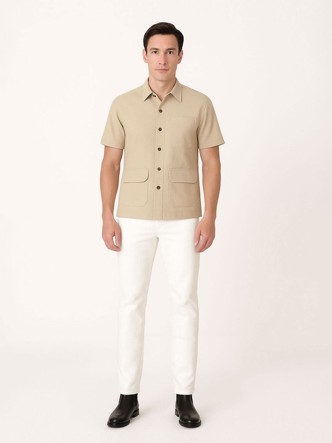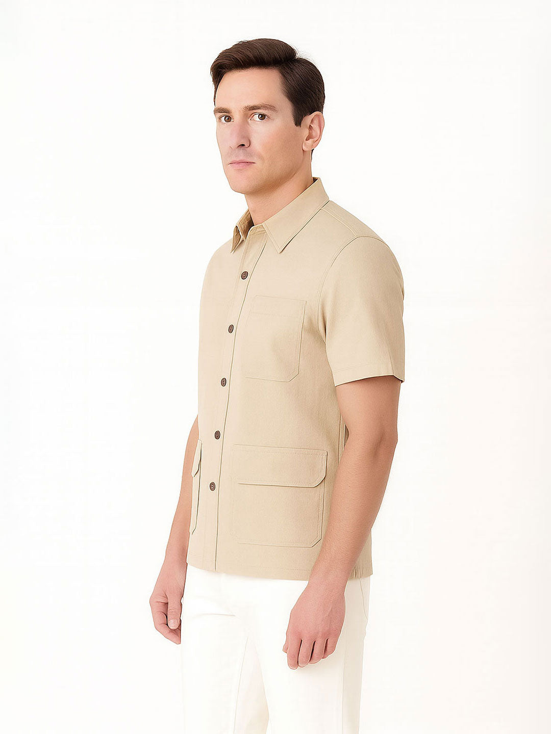 House of W | Men’s Beige Utility Short-Sleeve Shirt