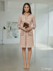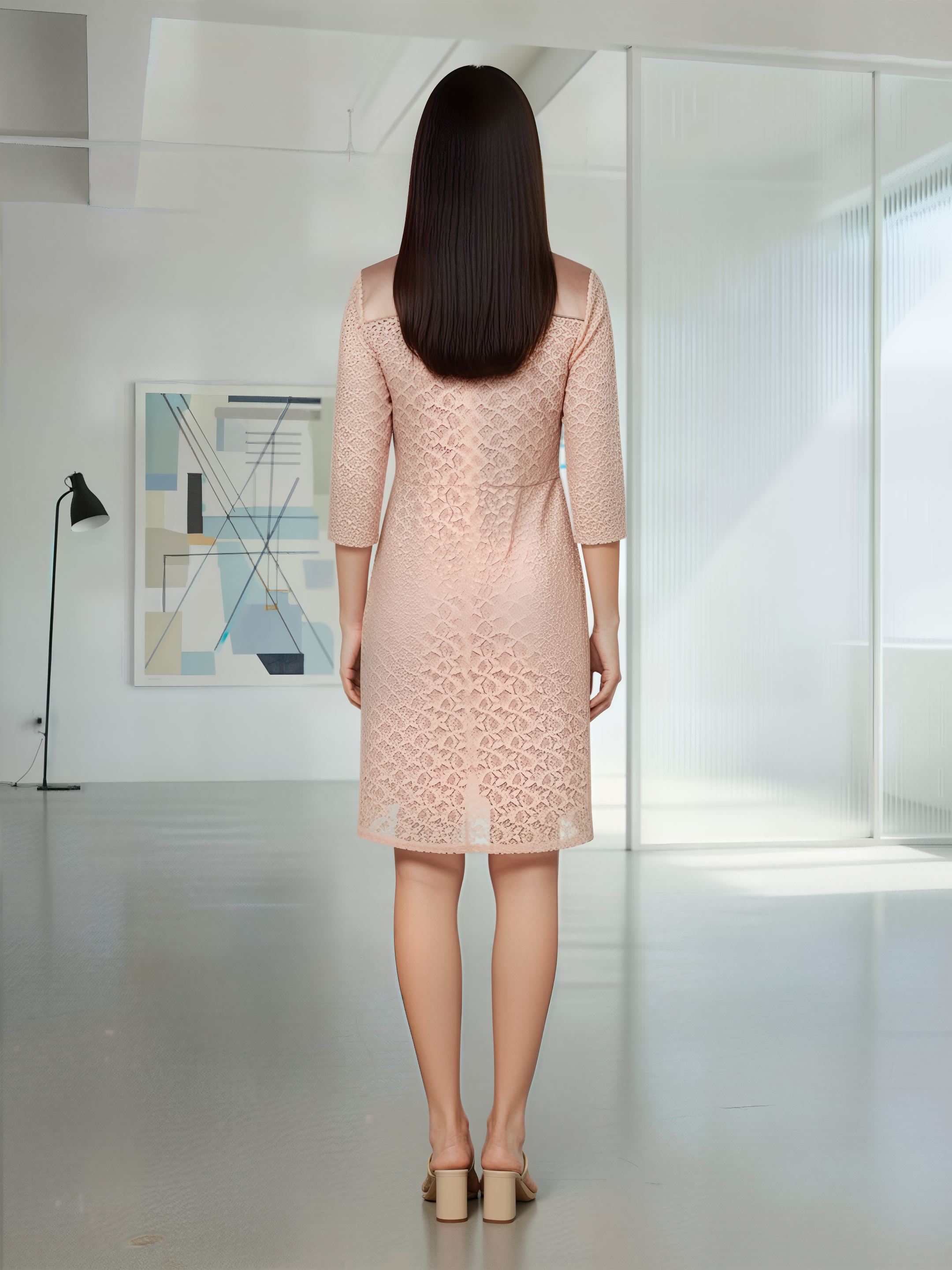 Elegant and feminine, this Blush Pink Lace Overlay Shirt Dress is designed with a delicate, textured lace fabric and smooth satin accents. Featuring a rounded satin collar, button-down front with gold-tone buttons, and 3/4th sleeves, it combines sophistication with modern charm. The front satin patch pockets add both style and functionality, making this dress a versatile pick for brunches, festive gatherings, or evening outings.