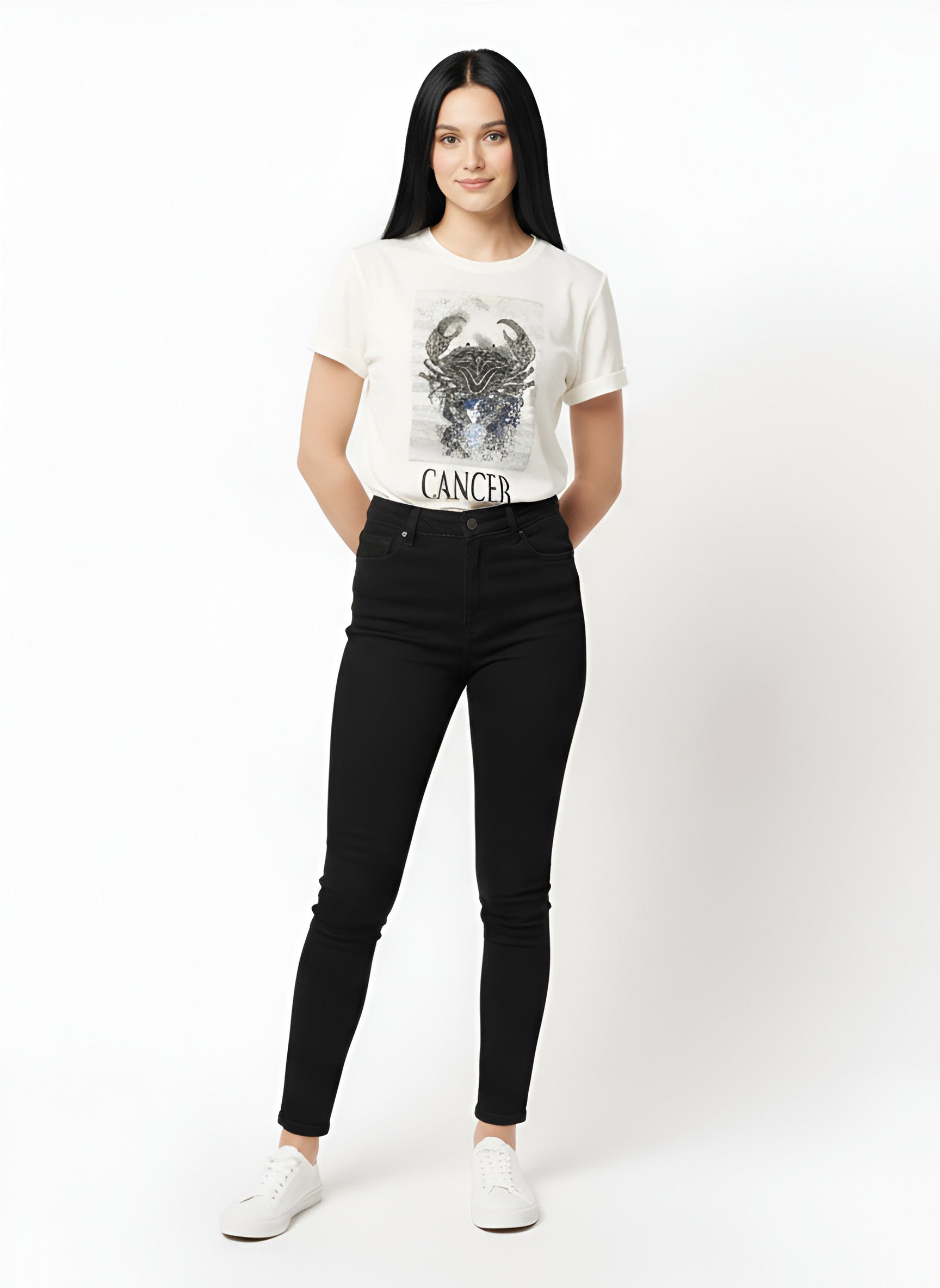 Keep things casual with this loose fit white cancer zodiac sign printed t-shirt. versatile and comfortable, this t-shirt is a great pick for casual wear. it is cut into comfortable fit, round neck and half sleeves. quirky print makes it look more attractive.