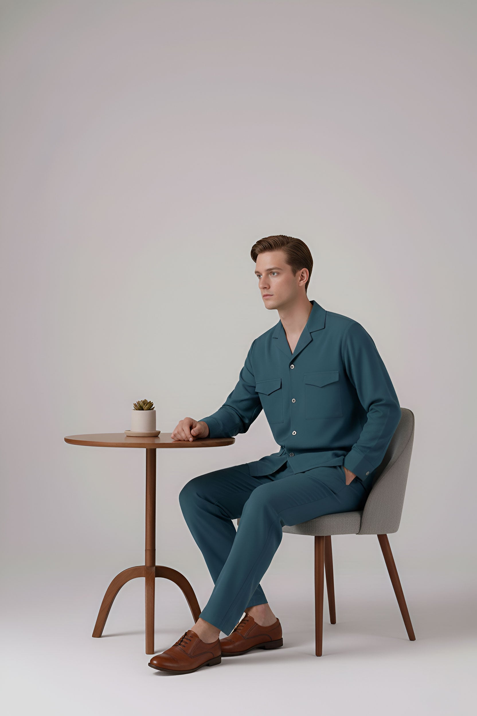 Pair this Power Suit set with brown leather sandals or classic loafers for a refined yet relaxed look. For a modern touch, accessorize with a statement watch and sunglasses. Ideal for vacations, casual brunches, or evening gatherings.