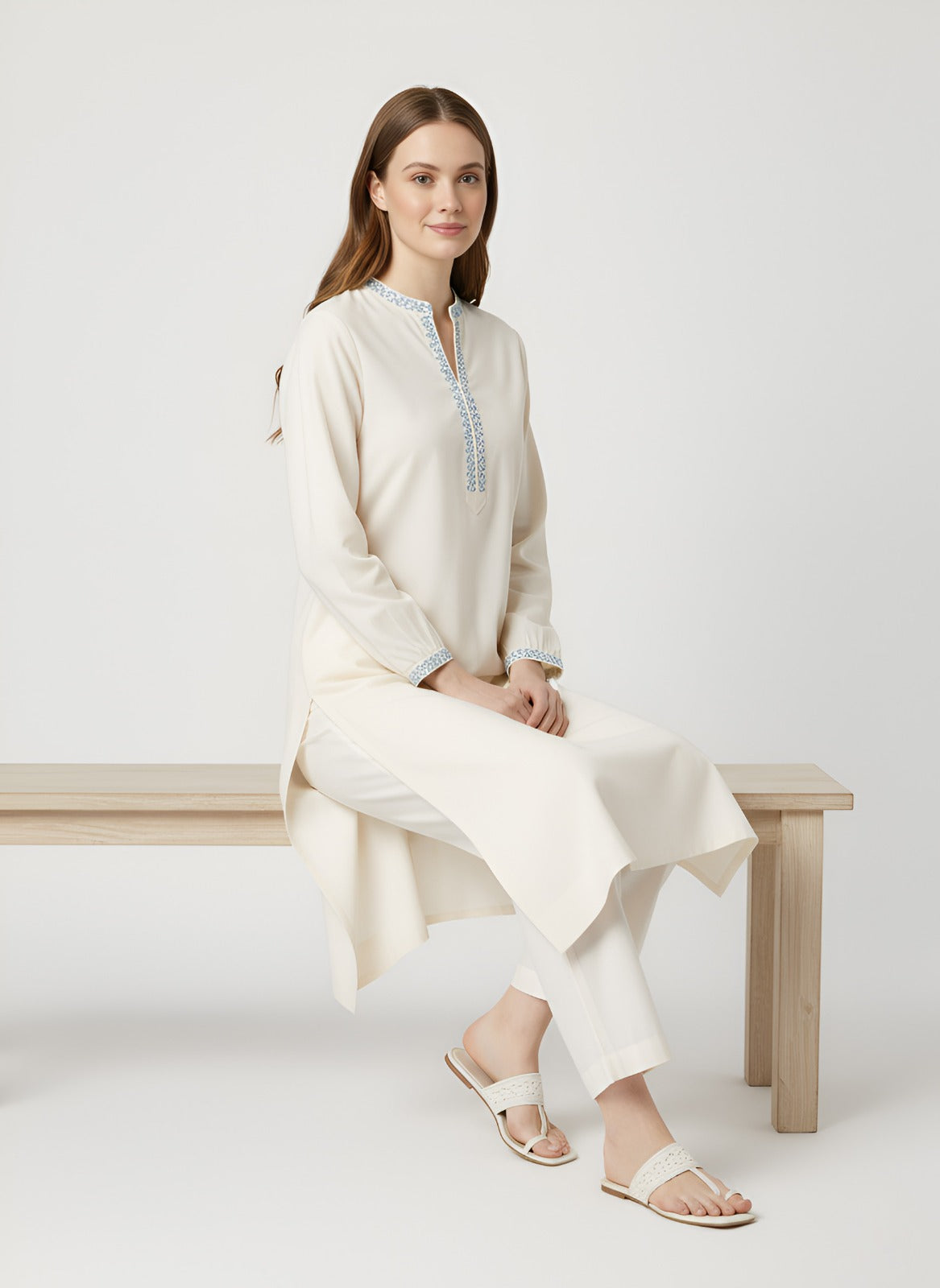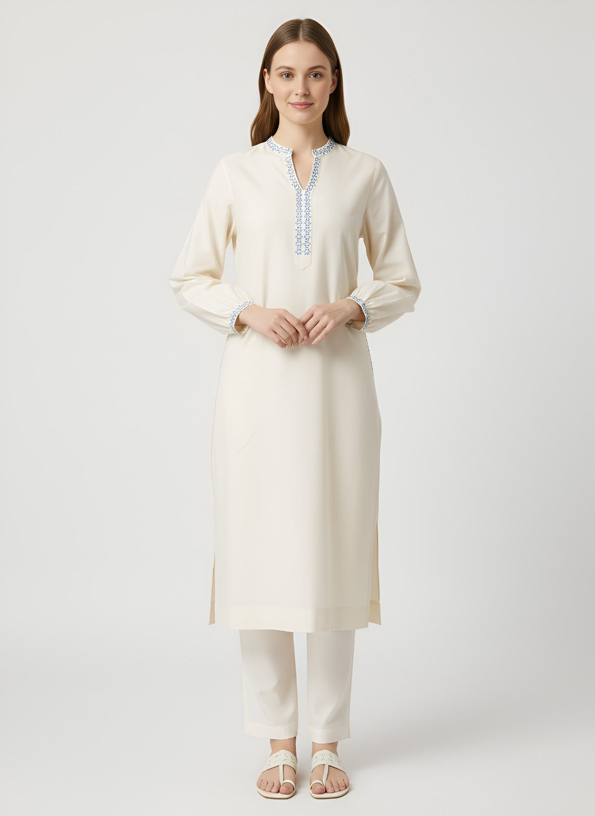 Embrace elegance with our Embellished Ivory Kurta from Barara Ethnic, perfect for festive and semi-formal occasions. This kurta features delicate embellishments along the neckline and cuffs, adding a touch of sophistication to its simple and graceful design. Ideal for those seeking comfort without compromising on style.