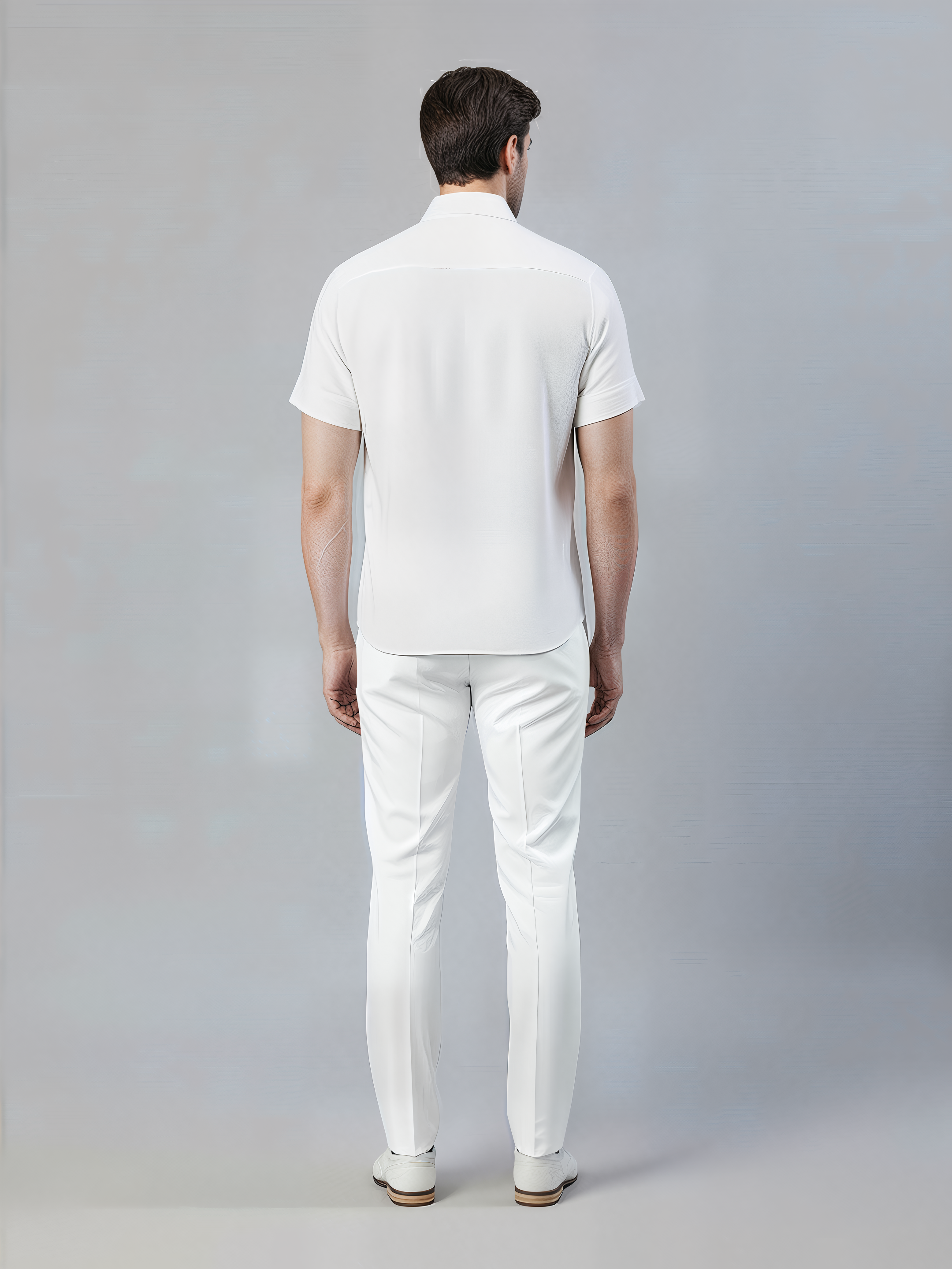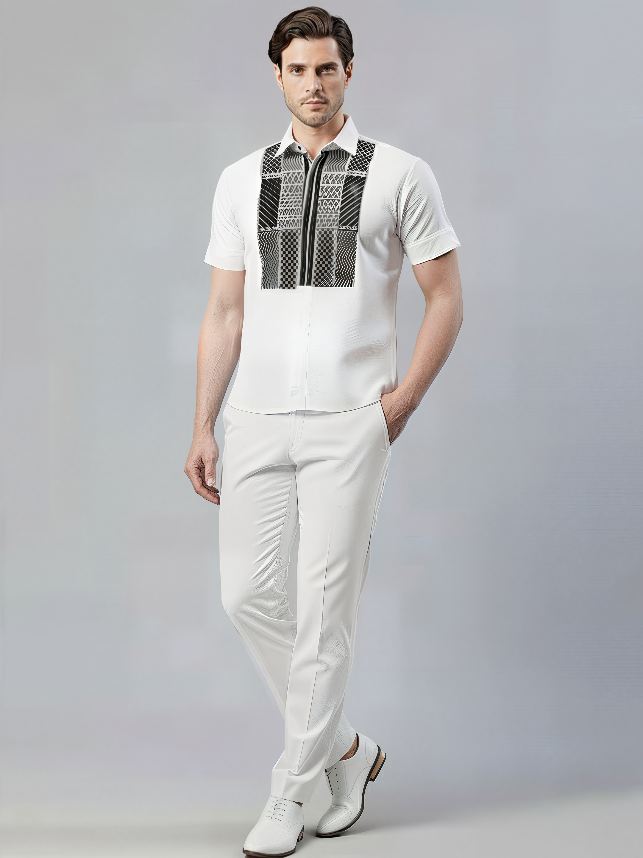 This white yoke embroidered straight-fit shirt is a perfect combination of modern cuts with breezy silhouettes. Its ultra-stylish details and striking hues sum up the shirt's cool, contemporary and lively spirit.